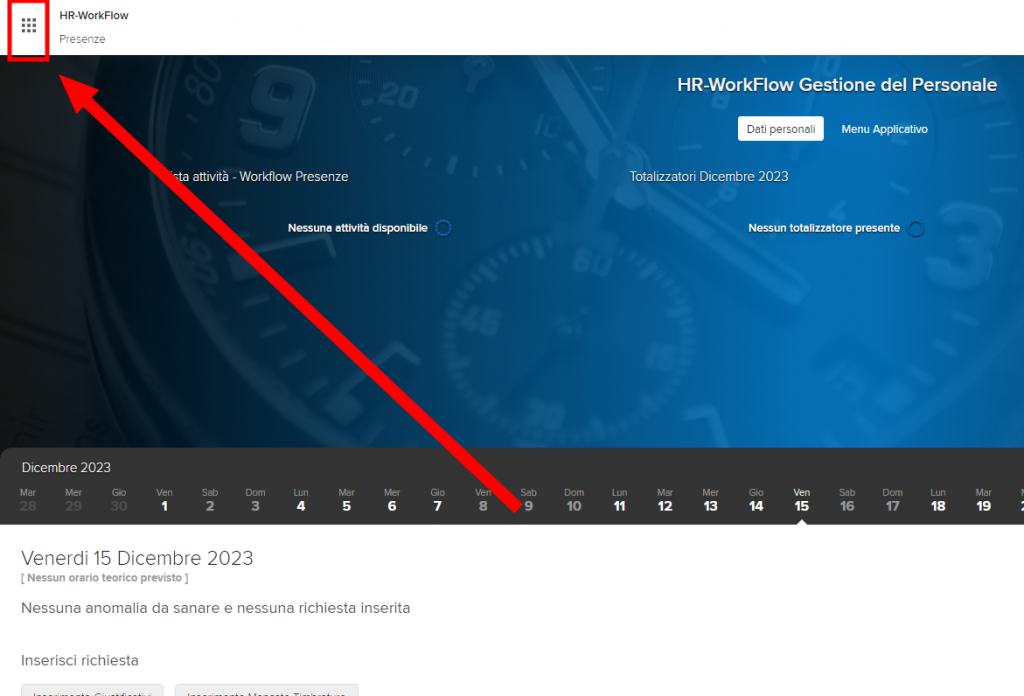 Fare clic sui 9 punti in alto a destra, si aprirà il menu laterale. Fare clic su ZTimesheet