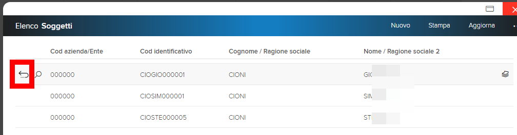 Inseriamo zero nel campo “cod azienda ente”, poi facciamo clic sulla 🔎 sotto a “codice responsabile