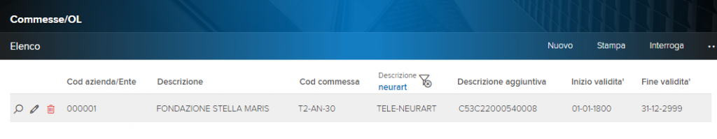 (Si può cercare per codice progetto filtrando la colonna “Cod commessa”)